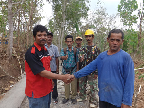tetapi dalam proyek ini mbok saya ikut foto kata Suradiman/Suro dukuh Pugeran sambil menyelinap tampil dalam aksi jabat tangan dukuh Semoyo Nardi dan Ngatimin selaku orang yang merelakan kayu untuk di sinco,