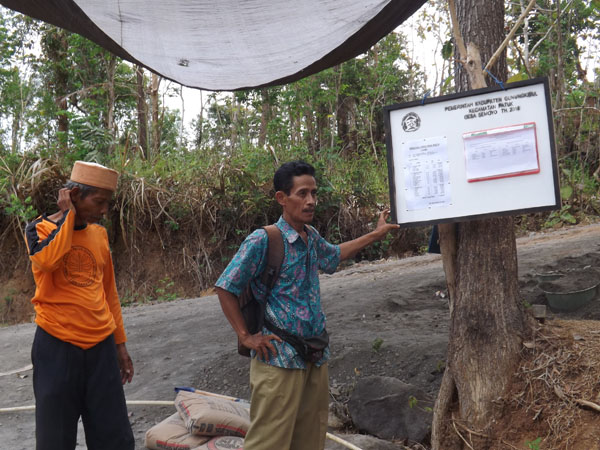 Sementara itu Ngatimin petani penggarap ladang setelah di jelaskan Ketua TPK Desa Sunardi terkait proyek corisasi jalan kampung maka Ngatimin lantas merelakan 9 pohon kayu akasia untuk di tebang.