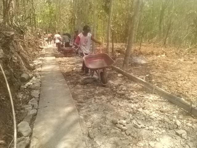 Seperti halnya di desa Semoyo Kecamatan Patuk Gunungkidul Kamis 1 November 2018 warga tampak cerah mengerjakan corisasi dan rabat jalan.