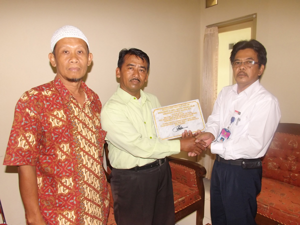 selain praasasti di tanda tangani camat agenda pengurus memberikan sauvenir kerajinan kulit berupa lampu [porteble buat perajin pucung rejo. tim red