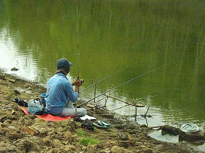 yaa pak ini saya sudah mendapat ikan nila dengan umpan lumut, ikan yang ada dalam dam, ada ikan terbang tawes lele dan patin, ndak tahu dulu asal muasalnya ikan tapi yang jelas di sini banyak ikannya.