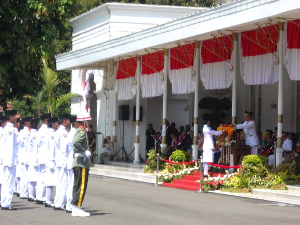 Jogjkarta- Pastnews.com melaporkan, Peringat HUT RI ke 69 yang dilaksanakan di Gedung Agung Yogyakarta upacara kenegaraan ini selain diikuti para pejabat juga dihadiri masyarakat umum.