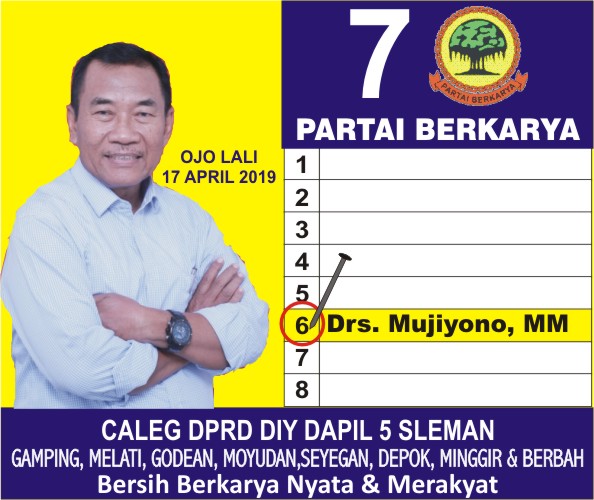 Satu dari calon legislatif DPRD DIY dari partai berkarya Drs. Mujiyono MM, yang masuk dapil selatan Sleman.