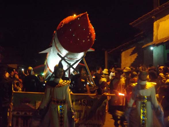 Aksi mereka menjadi hiburan selain untuk cuci mata di malam hari tersebut. Salah satu peserta yang meluncurkan mobil ala tentara mengusung 6 rudal kreasi muda mudi Masjid Arohmah Jogoragan mendapat perhatian.