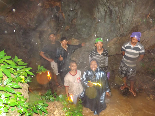 Setelah segala persiapan memadai, tentu persiapan yang lain yaitu mental juga di telah mantab, gelegar dan gemercik air mengalir dari dalam goa terdengar jelas, bahkan aliran air dari dalam goa yang terlihat kemerahan mengalir deras karena hujan lebat.
