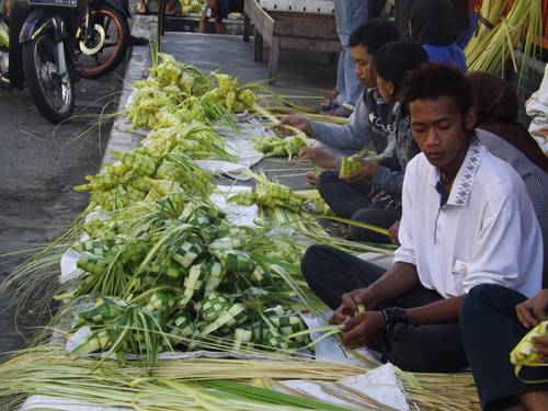 Mendulang rupiah menjelang lebaran dengan membuat kupat