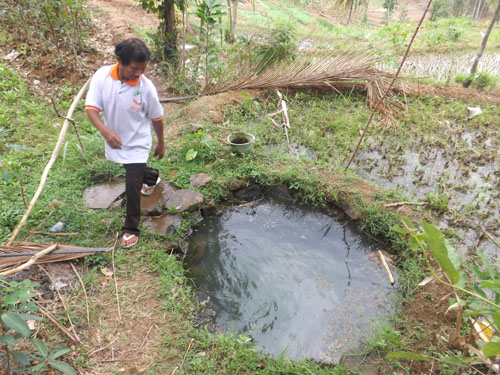 Untuk mendapatkan air bersih bila memasuki musim kemarau maka kami harus memikul sejauh 1 km dan ini masih di tambah medannya atau jalan terjal serta sempit, bayangkan Mas,,.. kata Paijo mantan RT di Pagotan Pengkol tersebut sambil menunjukan sumurnya yang kering kerontang dan setiap masuk bulan september sudah asat, jadi adanya bantuan sangat senang.
