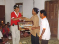 << dr.Porwoady simbolis serahkan bantuan ke warga.