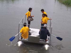 Sebelumnya 2 unit perahu dayung bermoncong lancip dengan badan kotak segi empat ini di kocori air kendi oleh kepala dinas pariwisata Tasbir SH.