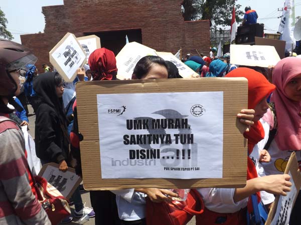 Aksi damai ini menuntut upah layak dari semula 2050.000 sebulan menjadi rp. 2700.000.