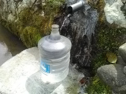 saya semula hanya bertahan 3 galon s/d 5 saja dan karena ada yang curiga di kira air sumur biasa sehingga srendet, namun setelah di nyatakan dengan kasat mata merupakan sumber air murni dan tanpa kapur serta asam yang rendah kisaran 19 maka air tersebut layak konsumsi dan ini sudah di tes layak minum langsung 'kata Sumadi.
