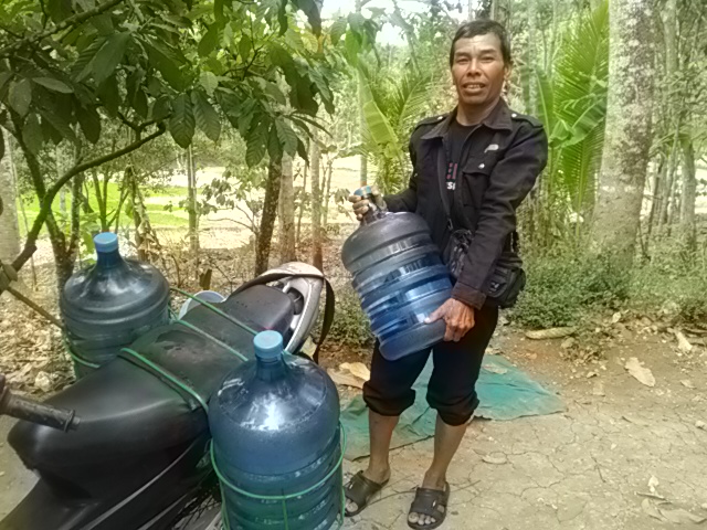 saya selama 4 bulan dulu puasa tida apa apa, dan setengah tahun kemudian bisa jalan dan mampu mengantar sehari hingga puluhan galon, lanjut warga Rt 06 Bobong tersebut.