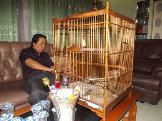 KOHBING SEDANG MERAWAT BURUNG CUCAKRAWA UNTUK DI DENGAR SUARANYA