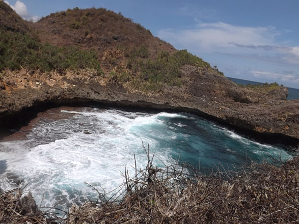 Deburan ombak besar, buih -buih air laut yang memutih, yang di hasilkan membuat pemandangan kian terfokus, bahkan karang karang serta tebing yang ada di pinggir pantai merupakan panorama yang menghibur.