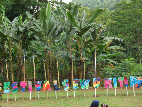 Puluhan kitiran dari beragam jenis dan ukuran di pajang di atas pematang sawah milik warga sekitar.