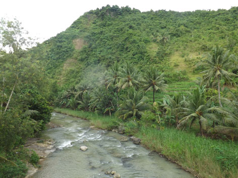 kanan kiri sungai berupa pohon kelapa dan gunung-gunung yang bagus nan tinggi kedepan jika warga tergugah akan potensi yang ada maka bukan hal yang mustahil kawasan ini bisa menjadi distinasi