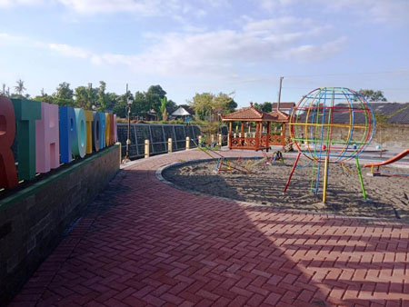 Di taman ini di lengkapi gazebo tempat duduk, tempat bermain anak plototan bandulan, genjotan.
