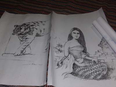 foto lukisan macan dan Roro Joinggrang dari kru TV trans 7