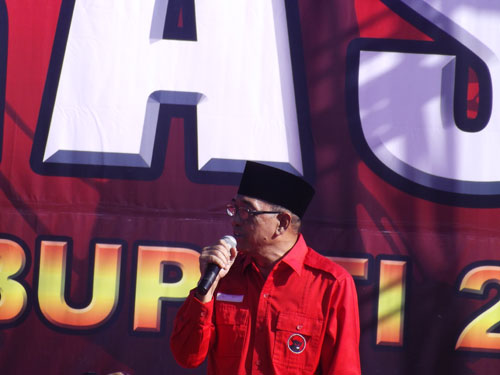 Kedatangan Drs.Idam Damawi langsung di sambut para pendukungnya bahkan mantan bupati 2 periode tersebut cukup cekatan mendendangkan lagu sewu kuto.