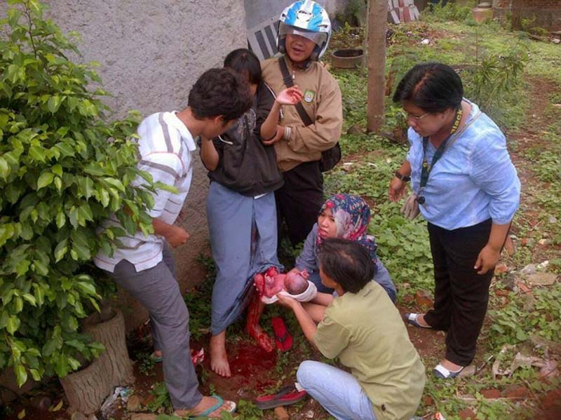 foto siswi melahirkan sedang di tolong warga masih kebun
