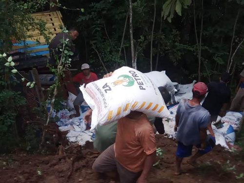 WARGA EVAKUASI PUPUK 5 TON DARI JURANG