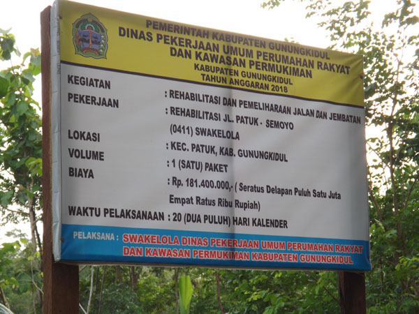 Perbaikan jalan ini sesuai papan namanya menelan biaya sekitar 181.400.000 juta dengan pengerjaan swakelola.