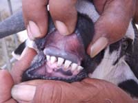 << foto gigi kambing yang belum pernah poel giginya kecil dan rata.