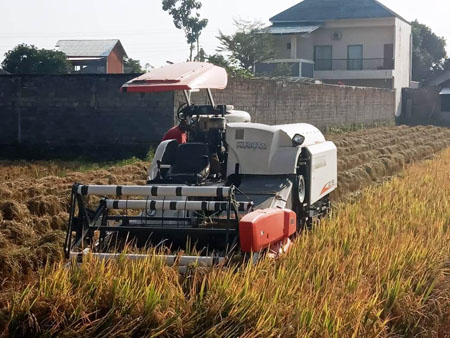 Dijelaskan lagi, bahwa panen padi dengan mesin modern dewasa ini kian memudahkan bagi petani selain juga tak perlu repot dengan persiapan dan waktu lama yang menelan biaya tinggi dengan alat canggih petani lebih ngirit tenaga manusia,