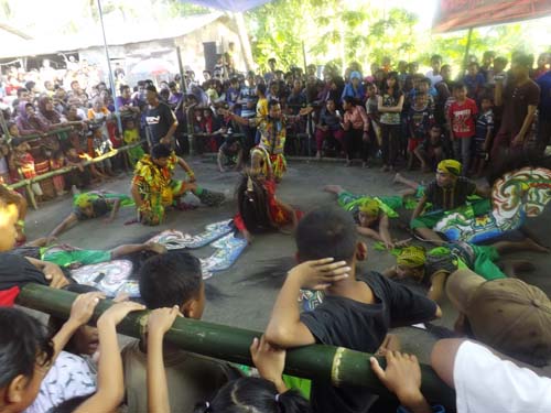 Ratusan warga melihat dari dekat meski di luar pagar pembatas, salah satu penonton yang mengaku tikjo mengatakan dengan menyaksikan hiburan atraksi kesenian kuda lumping maka akan dapat menangkal arus budaya asing yang tidak selaras dengan kebudayaan kita.