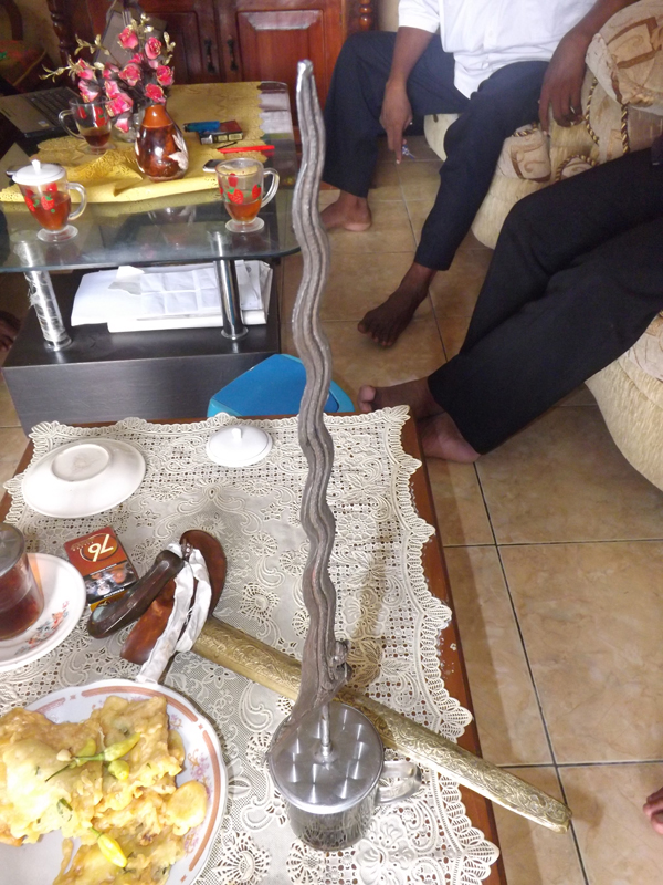 Yaa sebilah keris bernama naga kiki oleh Si empunya di dirikan di atas tutup gelas tanpa roboh.