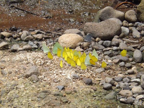 Kupu - kupu bergerombol karena mengerubungi bekas kepiting atau bangkai kepiting yang telah membusuk di pinggir kali Semoyo atau di kawasan air terjun lengkongsari.Selain itu juga ada yang mengerubungi kelapa.