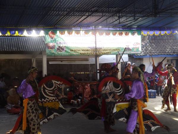 Salah satu group kesenian tradisionil jatilan Asal Soka Ngoro-oro Patuk juga mendapat danais kemudian sebagai simbolis tampil di depan publik di balai desa setempat.