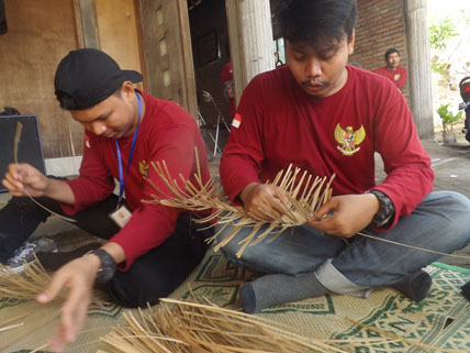 Pelatihan di laksanakan di Jatirejo RT 07 termasuk 2 agenda belajar yakni membuat anyaman bambu dan membuat wayang kulit di sekertariat desa wisata Pucung Rejo Dengkeng RT 03