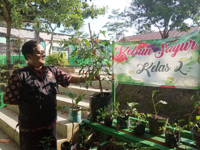 SOLI NURUDIN TUNJUKAN TANMAN CABE DI LINGKUNGAN SD SOKOSARI