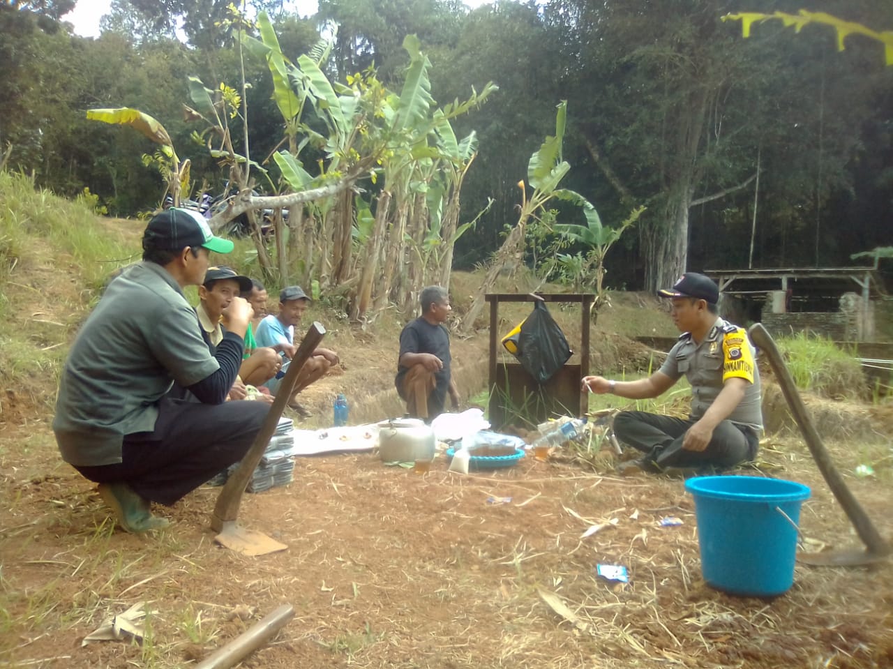 Ketua LKMD pun kembali bicara,meski kami baru star kegiatan juga mendapat pengarahan langsung dari Bhabinkamtibmas Desa Semoyo Bripka Wira Amibara yang aktif memberikan berbagai solusi terkait kegiatan, bahkan pak Wira juga ikut mencangkul lahan Kebit.