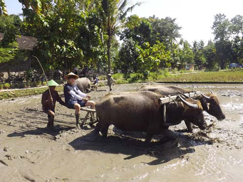 setelah selesai maka mereka bersama sama ke bulak yakni di selatan bendung tegal untuk membajak menggaru dan bercocok tanam.
