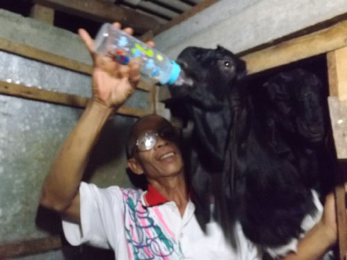 Merumput memberi Dot ngempongi dengan susu sapi merupakan pekerjaan sehari hari.