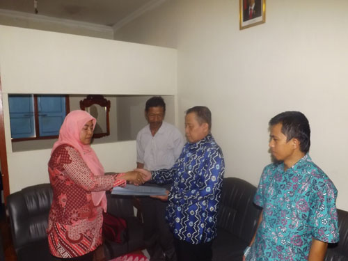Enik Dwi Astuti menyerhkan lamaran kades yang akan bertarung melawan Edi Sutrisno