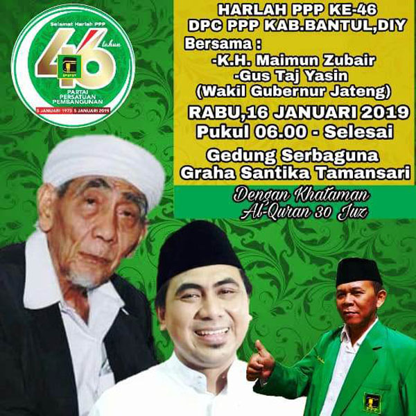 Menurutnya, dalam rangka memperingati Harlahnya ke -46 tahun 2019 DPC PPP Kabupaten Bantul akan mengadakan acara yang specktakuler dan "kejutan".