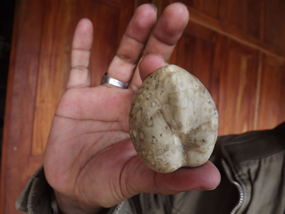 Gojun warga kedungkering Nglipar Gunungkidul saat menunjukan batu yang berbentuk dan sangar mirif dengan kura kura betina di dapat secra tandak sengaja di kali di wilayahnya.