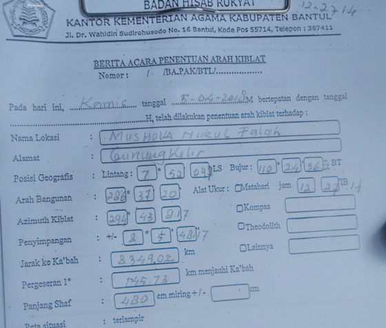 Khoirudin anggota Bandan Hisab Rukyat kabupaten bantul kepada wartawan pastvnews.com, menambahi Kami mengerjakan ini sesuai Anggaran Negara dan telah banyak merampungkan permohonan hingga ke desa-desa dan pelosok yang jumlahnya setahun antara 50-60 lokasi, paling sedikit 20 tempat ibadah besar kecilnya di tentukan sesuai Diva dan setiap tahun selau berbeda, jelas Khoirudin.